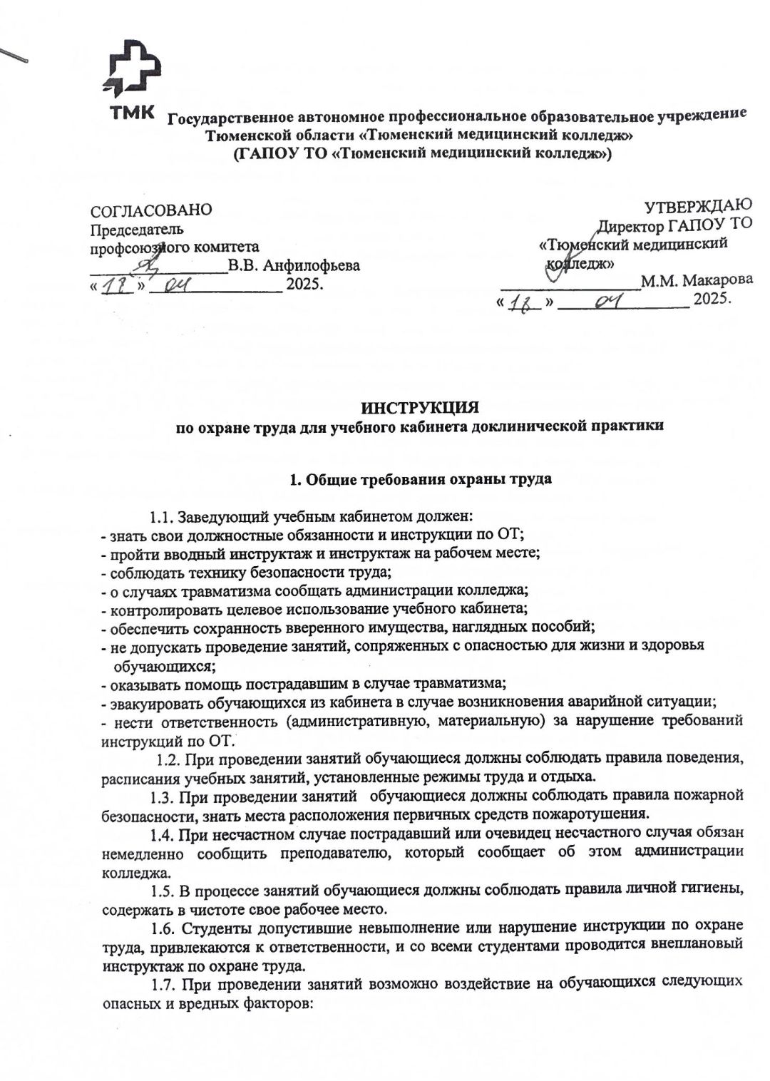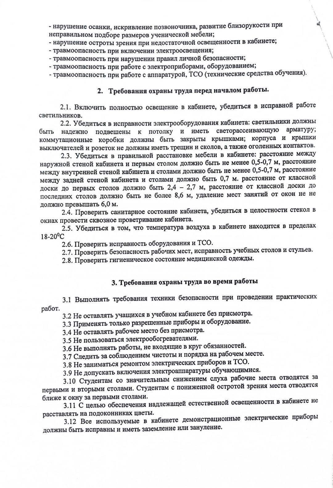 Инструкция по охране труда для кабинета доклинической практики